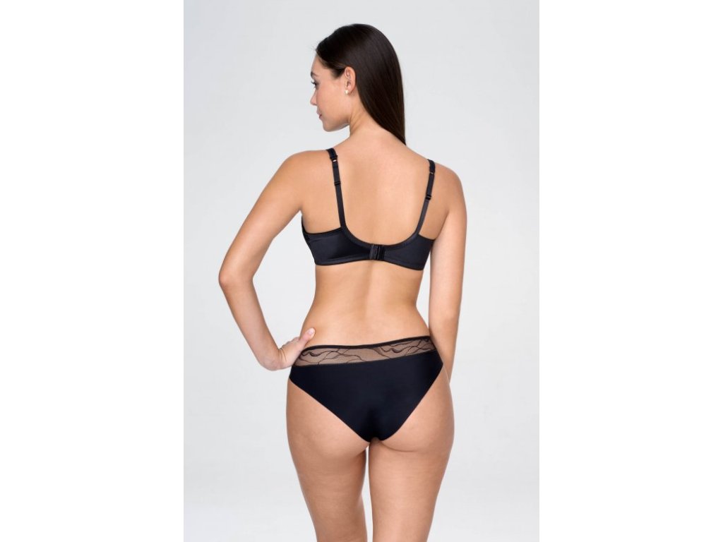 Designové brazilky s tylovými průstřihy jsou naprostou novinkou v kolekci Flow. Jde o nízké kalhotky sešité z více dílů, které svou kompozicí tvoří dokonalý model. Nohavičky brazilek jsou zakončený laserem, na bocích se napojuje tylová vsadka.