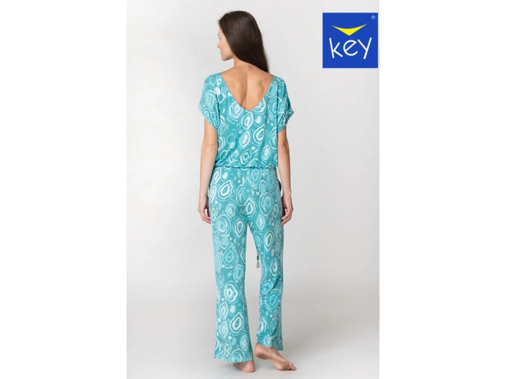 Dámský overal s krátkým rukávem je vyroben z extrémně jemného bambusového úpletu má antibakteriální a antialergické vlastnosti materiálu. Overal je volného střihu a větším výstřihem na zádech. V pase pohodlná guma a ozdobný pásek, na bocích overalu jsou kapsy.