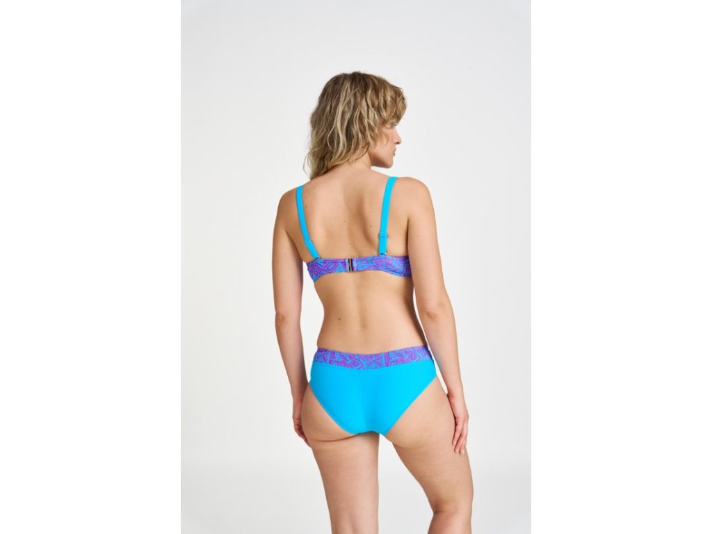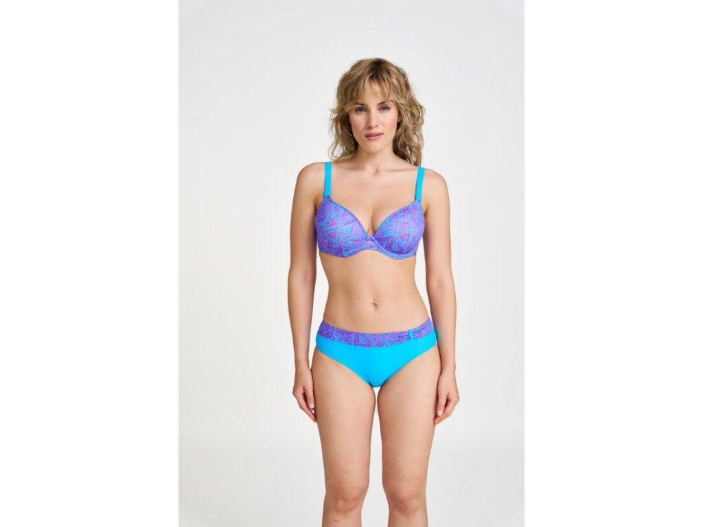 Velmi oblíbené klasické dvoudílné plavky. Podprsenka s kosticí šitá do T-střihu se slabou molitanovou výztuží. Odepínací ramínka lze zapínat do kříže nebo zavazovat za krkem. Kalhotky jsou vysoké do pasu a mají ohrnovací lem, čímž umožňují snížení na nižší kalhotky.